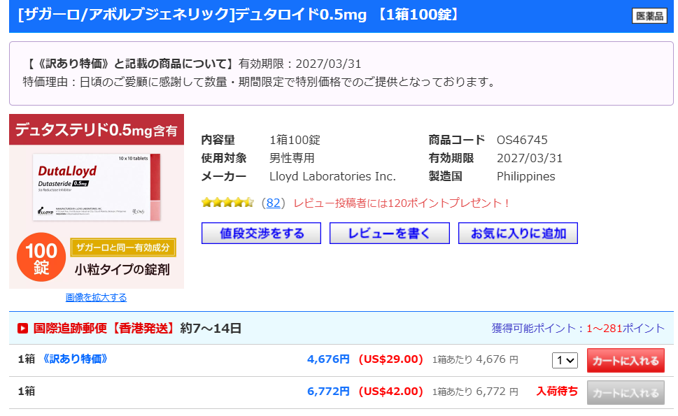 現在、私がミノキシジルタブレットとデュプロストを購入しているのは